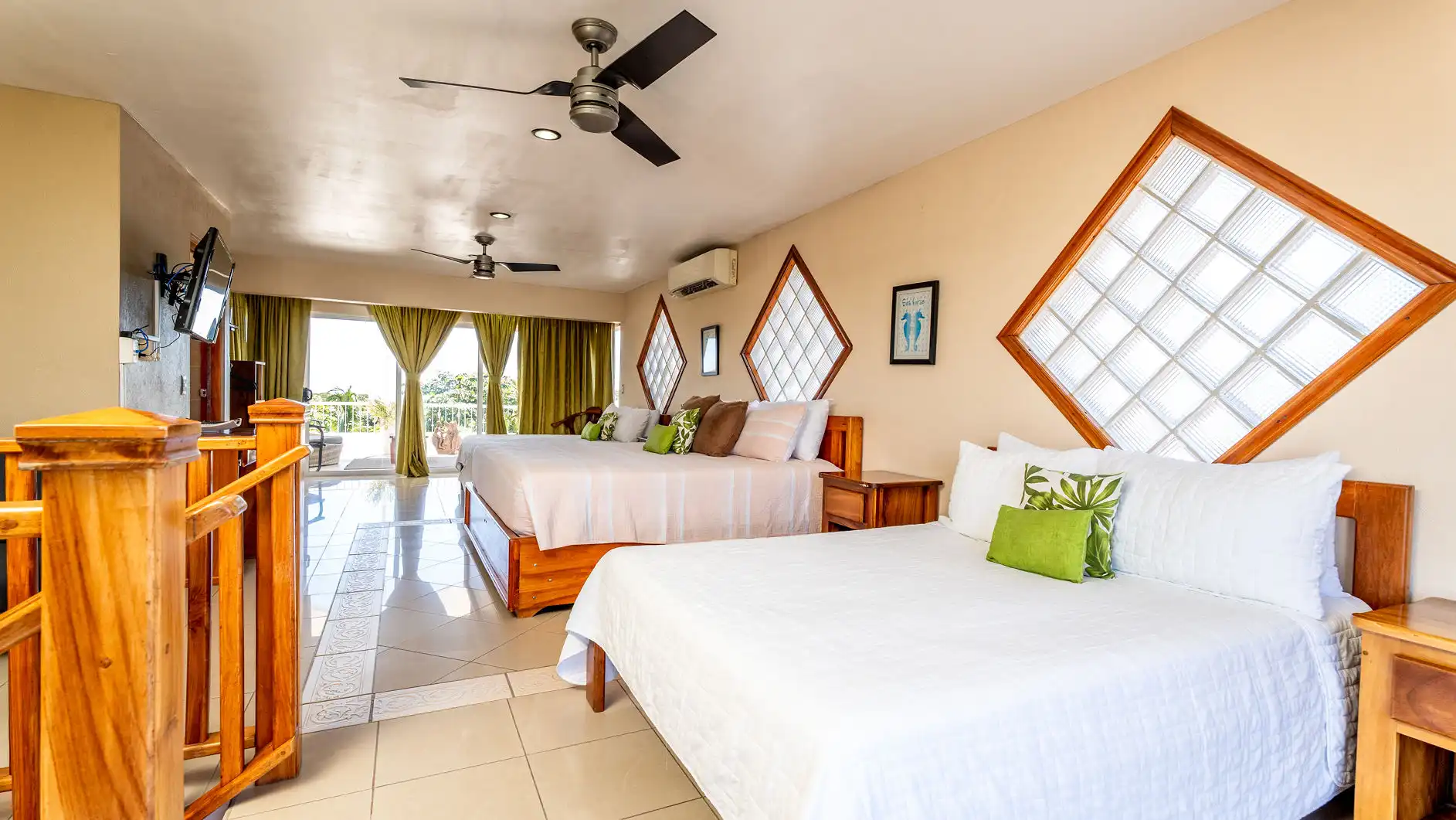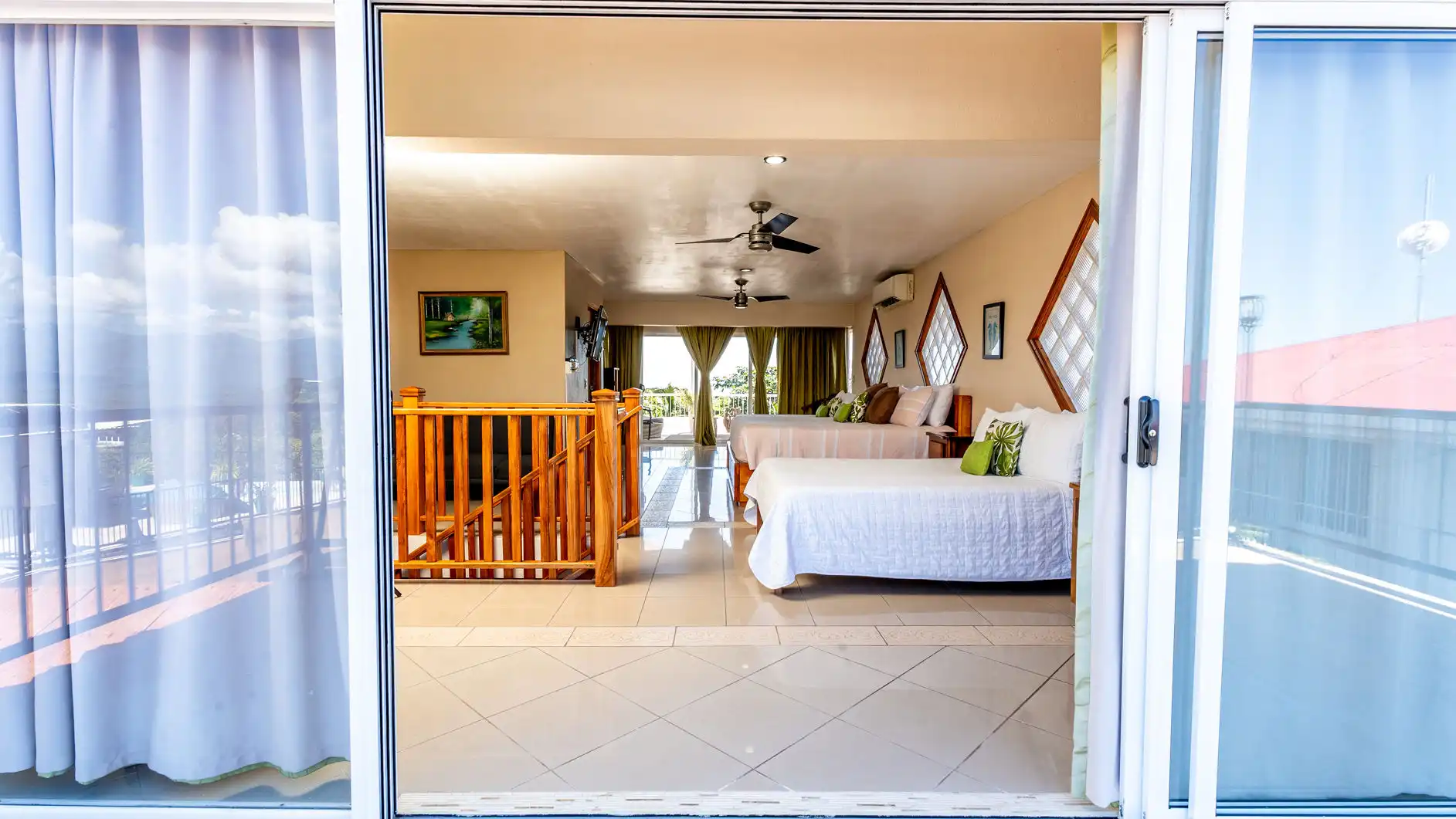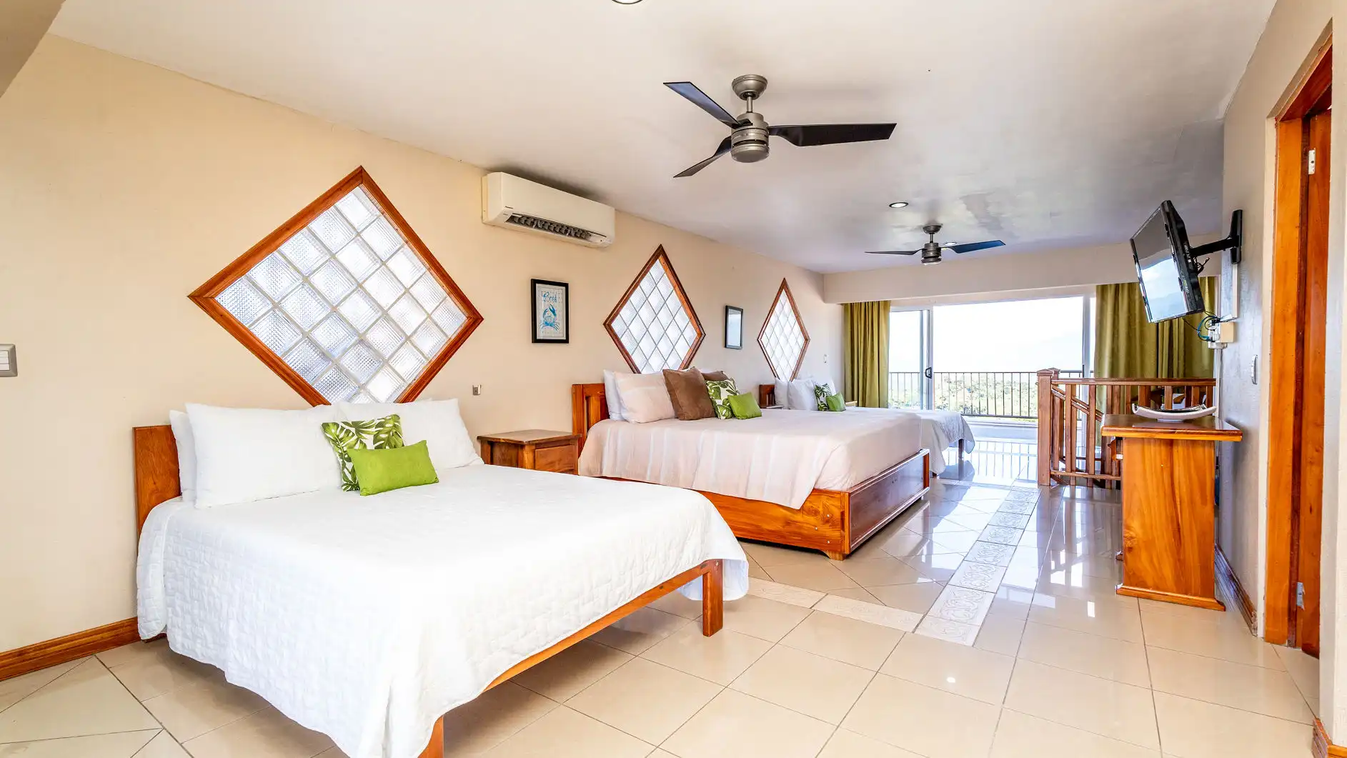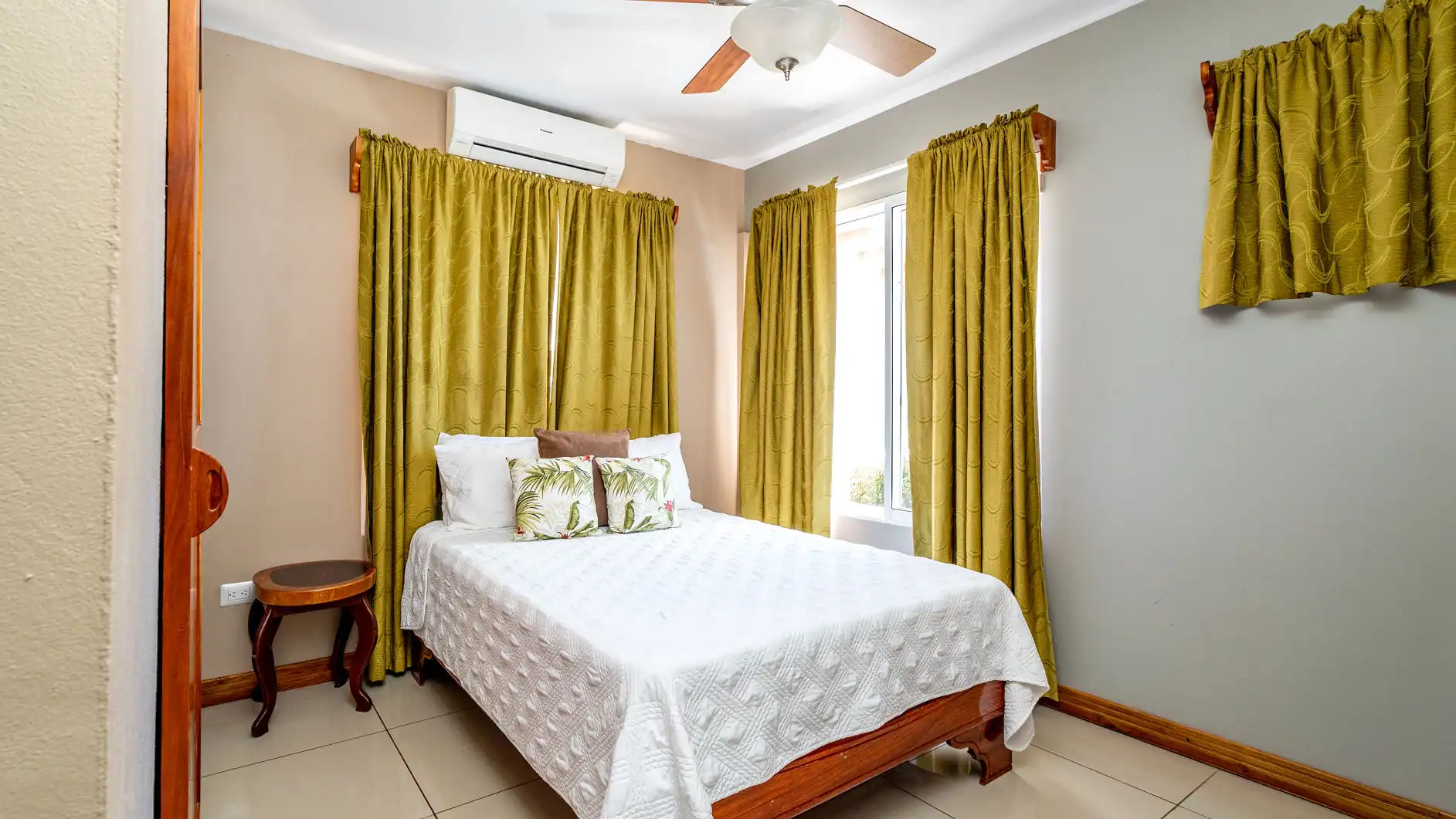 Air-conditioned bedrooms with ceiling fans throughout