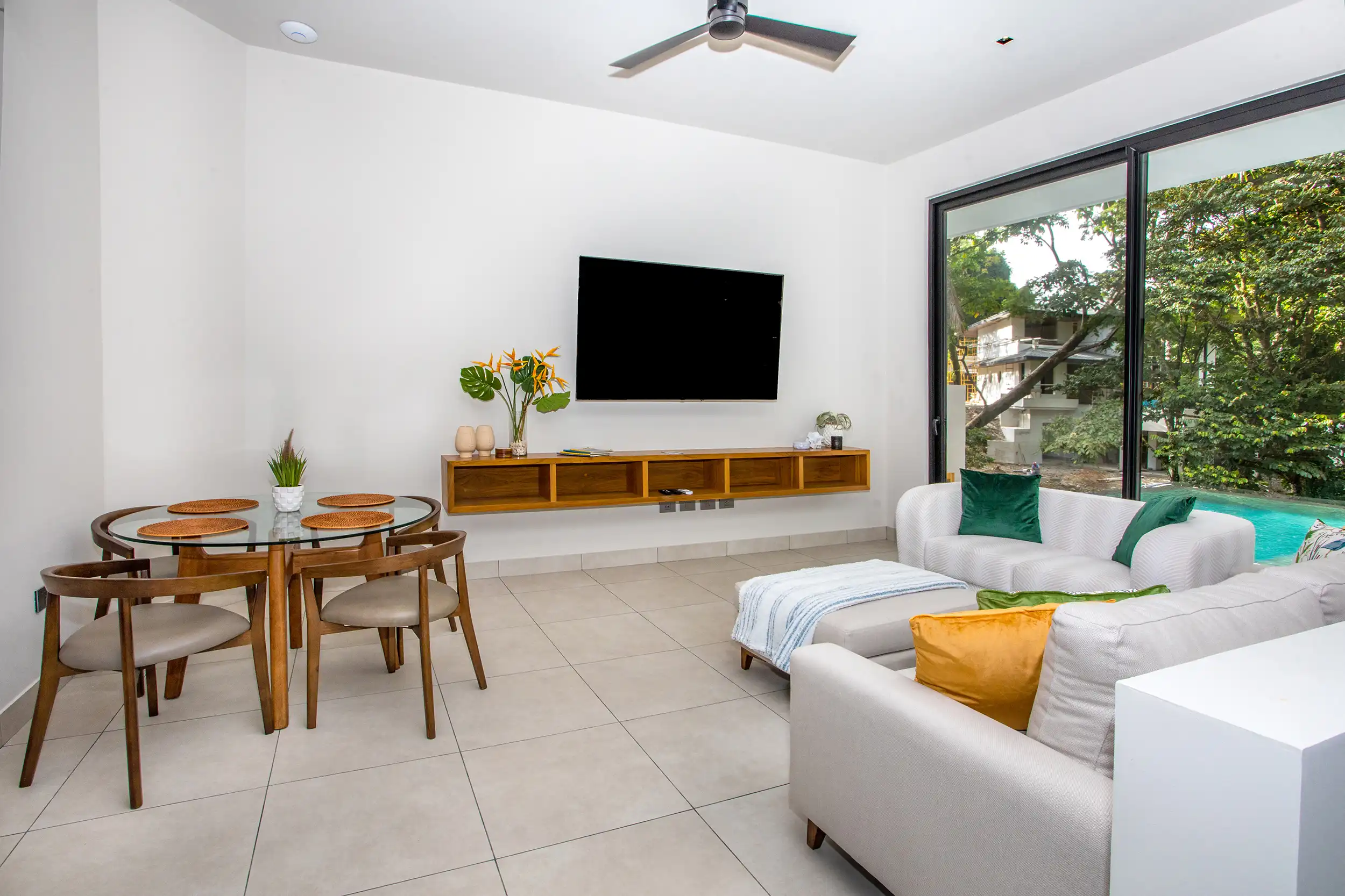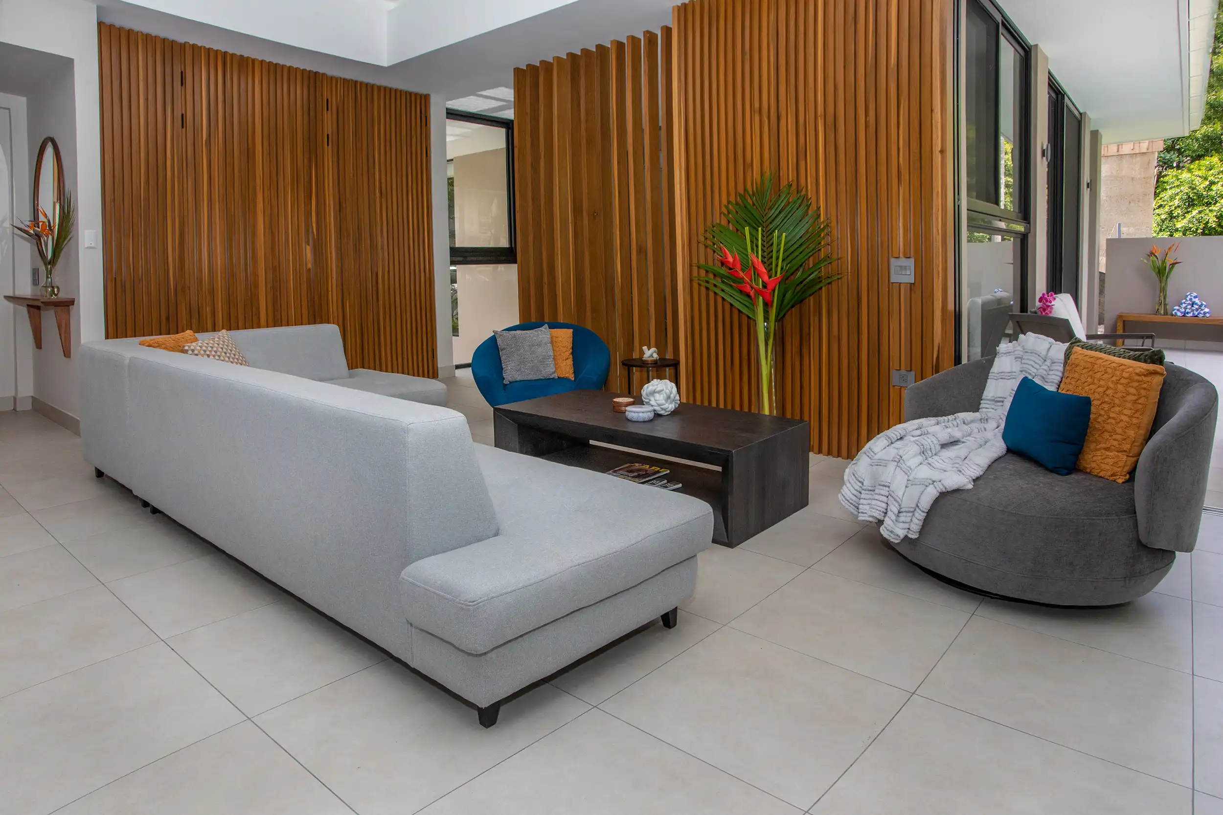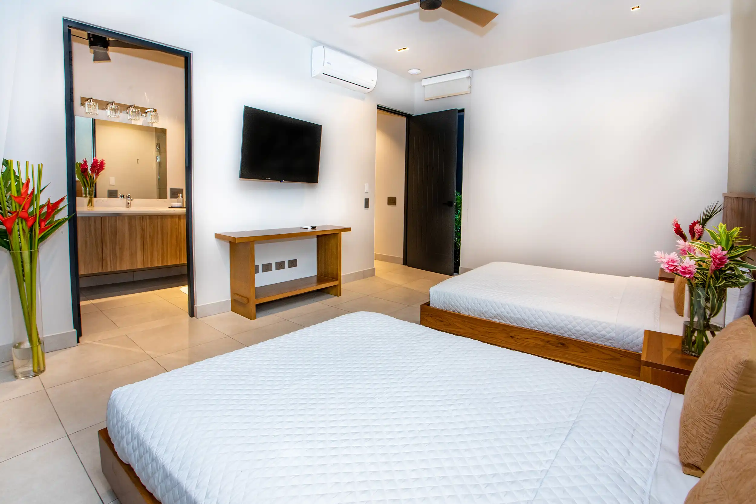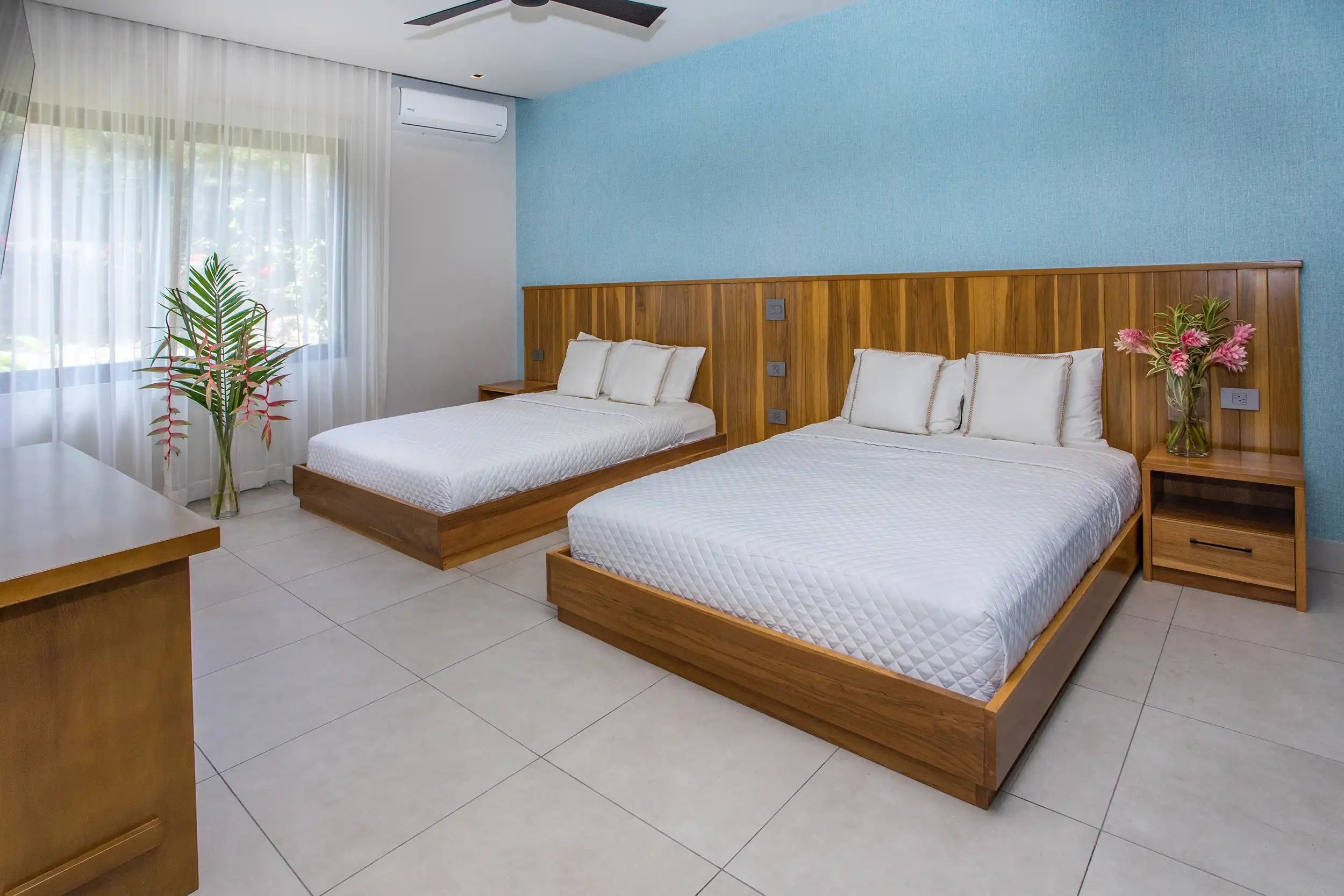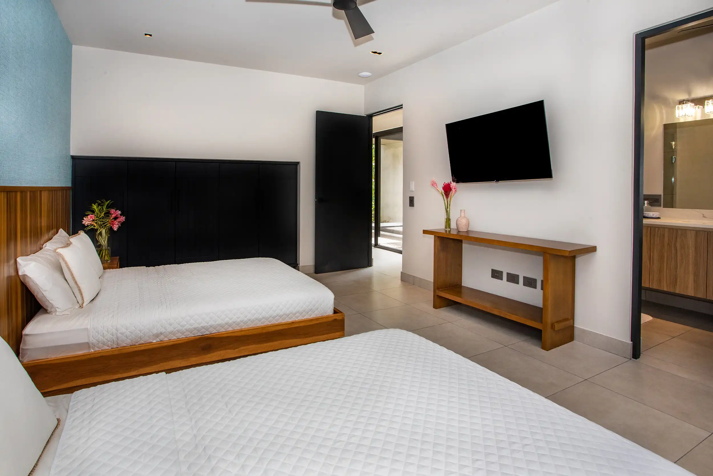 Built to embrace seamless indoor-outdoor living, Casa Dos Hermanas features soaring ceilings, expansive windows, and open-concept social spaces, allowing guests to feel fully connected to the tropical surroundings. The gourmet kitchen and spacious dining area are perfect for hosting memorable meals, whether you’re preparing a home-cooked feast or indulging in a private chef experience arranged by your concierge.