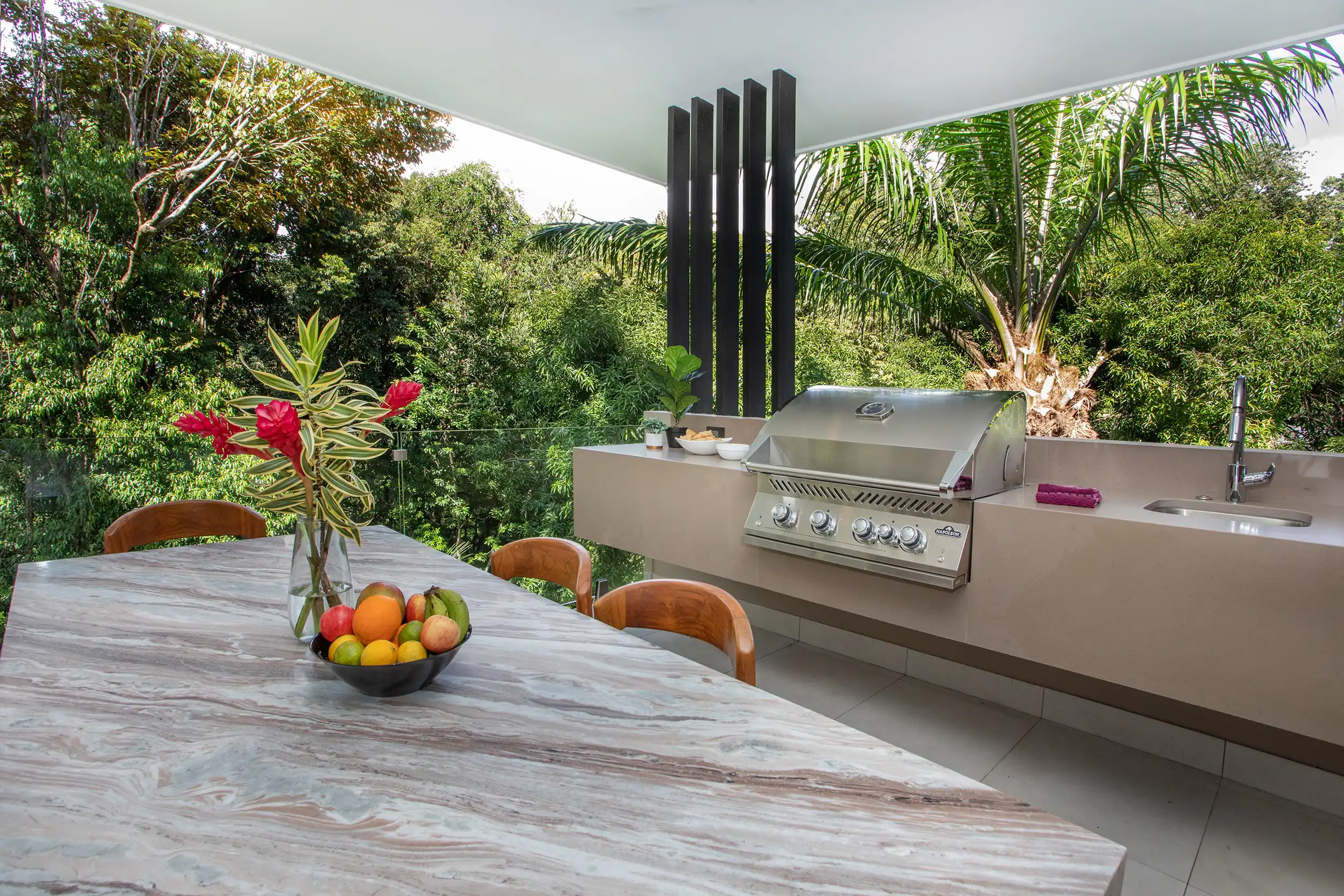 Step outside to discover a tranquil jungle oasis, complete with an infinity pool that merges seamlessly with the rainforest canopy. Relax on the sun-drenched terrace, fire up the BBQ grill, and dine al fresco while enjoying the soothing sounds of nature and exotic wildlife.