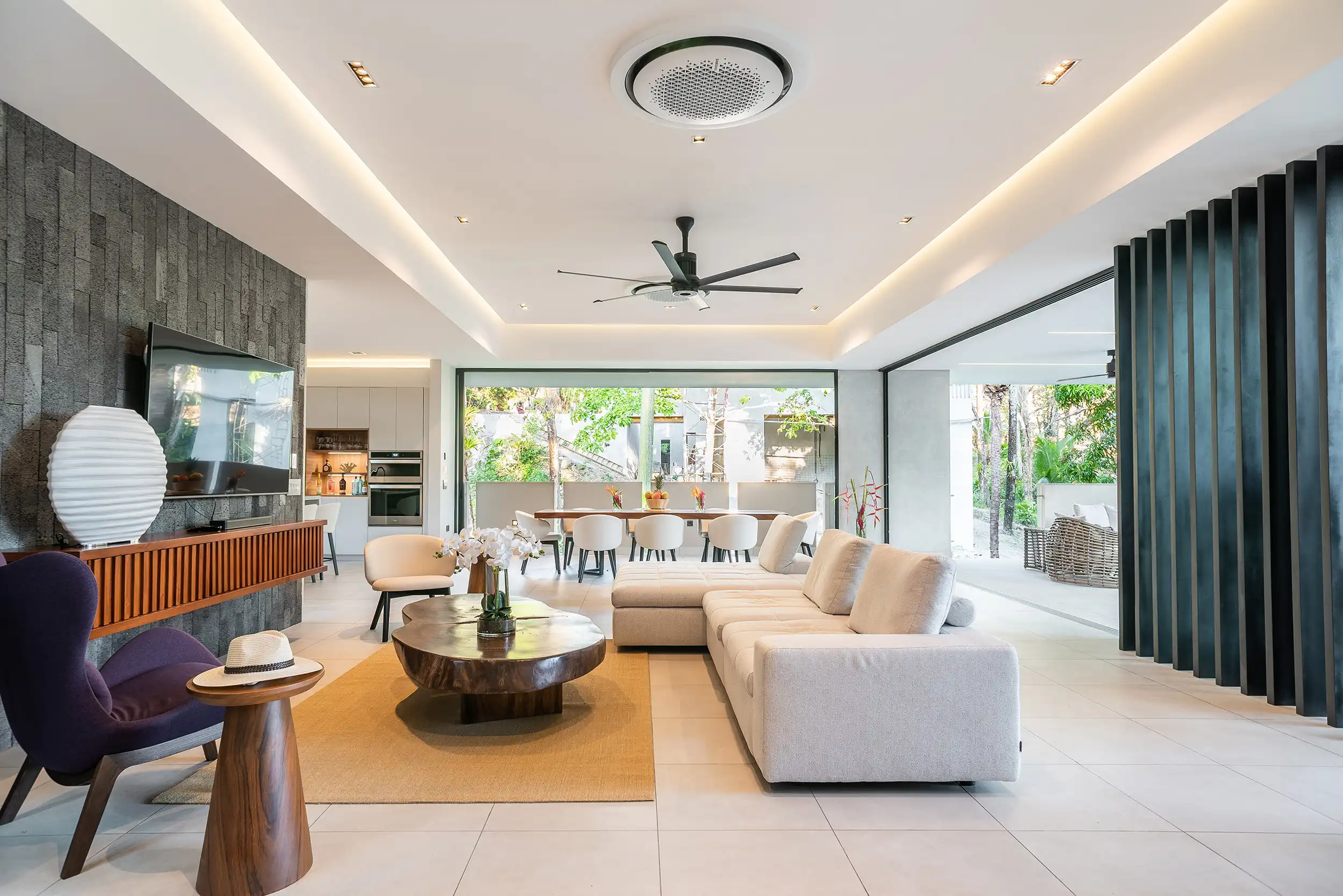 ✔ Seamless indoor-outdoor living with floor-to-ceiling glass walls