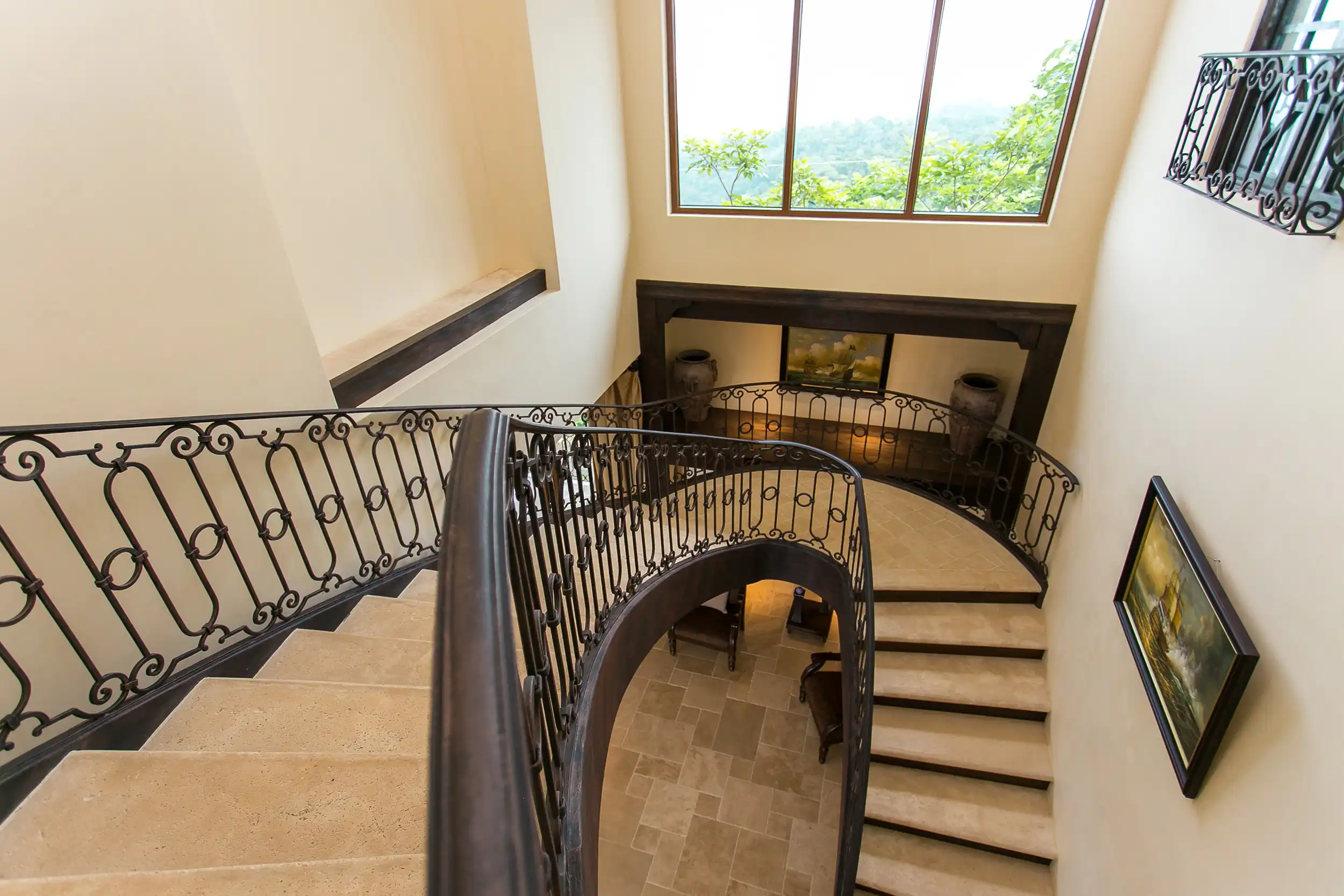 ✔ Elegant open spiral staircase leading to three upstairs suites